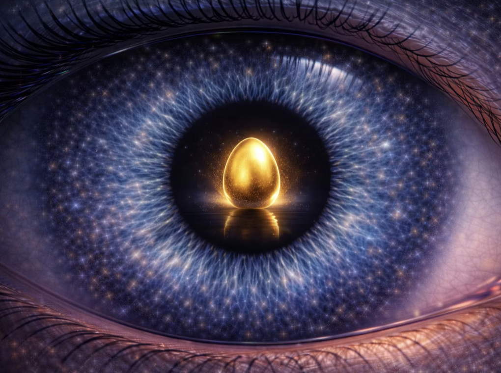 All dies existiert, um zum ursprünglichen Ei zurückzukehren. Um das, was sich geöffnet hat, wieder zusammenzusetzen. Um die Winkel des Lichts neu auszurichten. Um dem System wieder Kohärenz zu verleihen. Es geht nicht darum, das Bestehende zu zerstören, sondern es neu zu kalibrieren. Das Ei ist nie verschwunden. Es war immer als Muster, als Archetyp, als perfekte Form vorhanden, zu der alles zurückkehren kann. Wenn das Netz aktiv ist und die Knoten wieder synchron schwingen, wird etwas geschehen. Das Ei wird wieder leuchten. Golden. Mit allen Farben des Spektrums. In Harmonie.